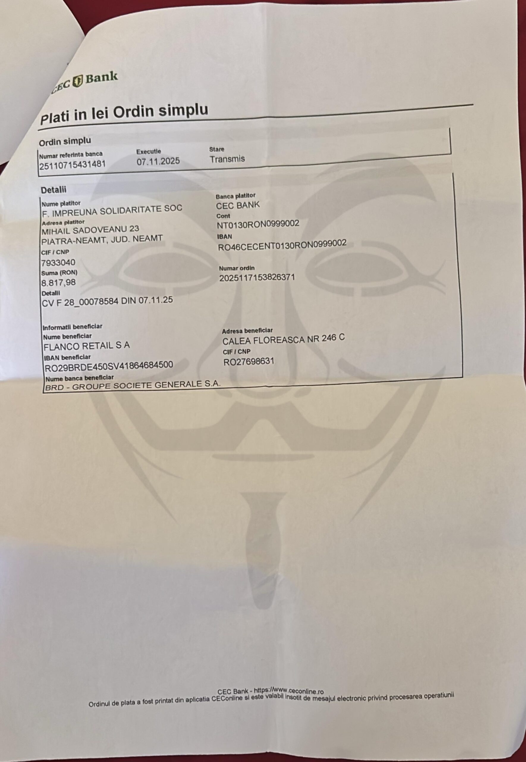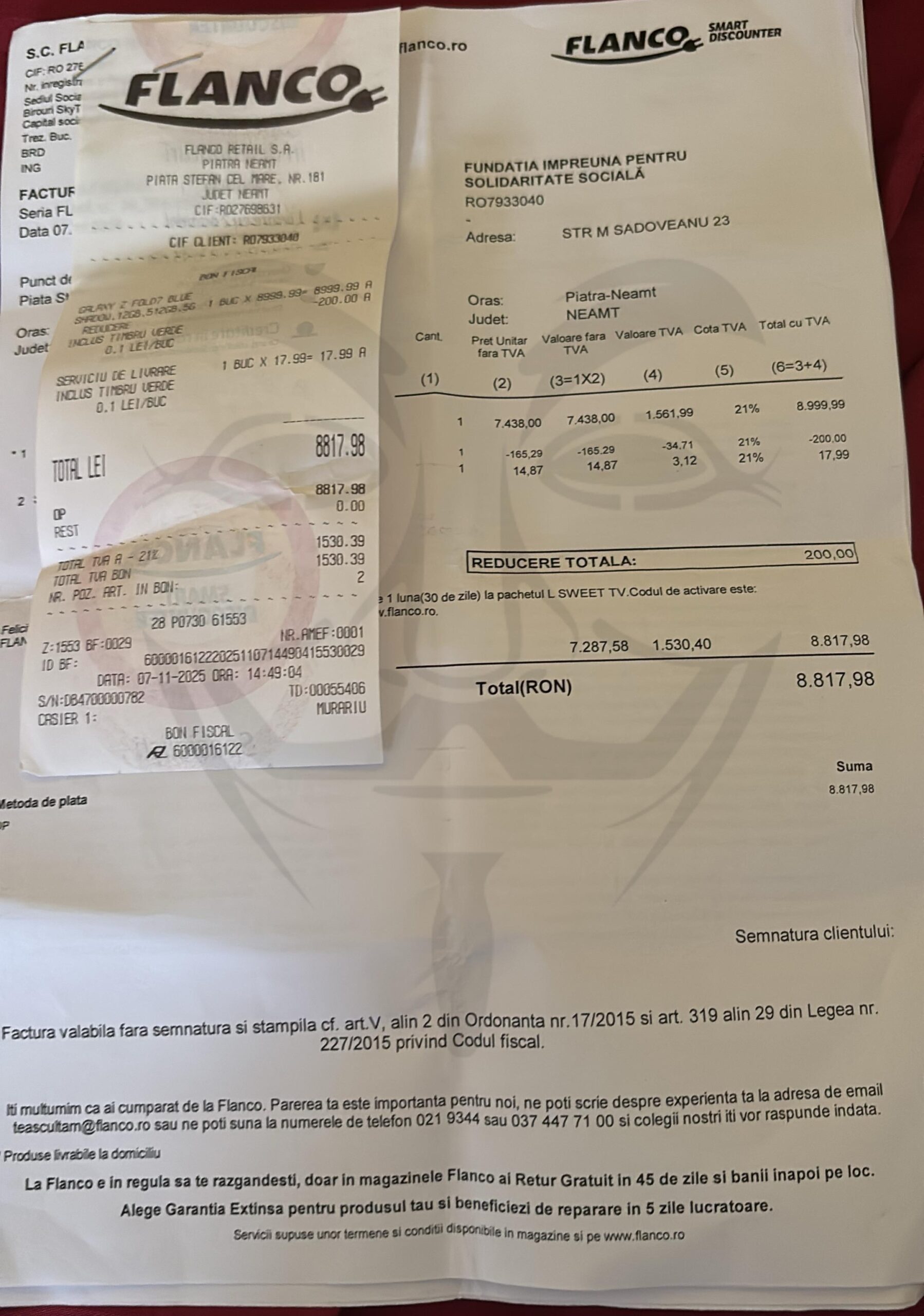 Achiziție în numele Domnului (telefon mobil în valoare de 8.817 RON, sau 1.734 EURO ori 88 milioane lei vechi – traducere mai exactă pentru pupătorii de moaște care nici astăzi nu fac diferența între leii noi și cei vechi dar care ne explicau cum e cu teleportarea prin 5G) a satanistului Munteanu de la Săvinești făcută din banii fraierilor/creștinopaților prin intermediul fundației „Împreună pentru Solidaritate Socială”…adica una din cele 15 fundații folosite drept paravan („vezi doamne copiii, că le face si le drege”…idioților!) de fariseul purtător de sutană pentru a spăla bani în campaniile electorale și pentru a-și umple propriile buzunare, că vila aia tip școală din apropierea centrului orașului, mașina model american de 150.000 euro cu motor de 6.2 litri benzină (care consumă aproape cât un TAF), avionul privat cu 4 locuri de 400.000 euro și alte mărunțișuri de zeci de mii de euro n-or fi picat din Rai!